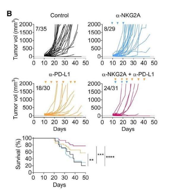 图|4个实验组的详细数据(来源:Anti-NKG2A mAb Is a Checkpoint Inhibitor that Promotes Anti-tumor Immunity by Unleashing Both T and NK Cells)