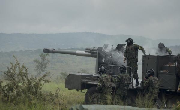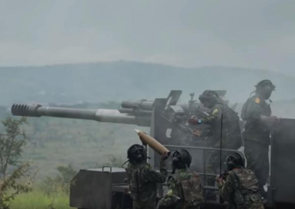 看起来卢旺达军人操作火炮的动作还是颇为像样的