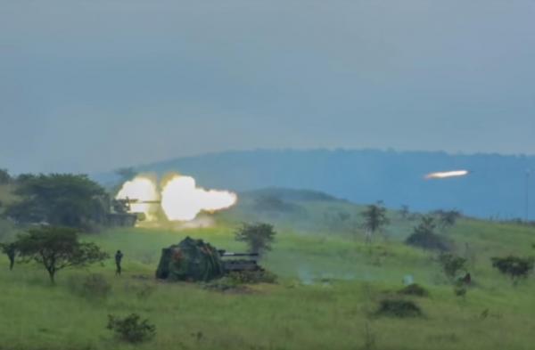 【文/观察者网 堵开源】英国《简氏防务周刊》网站12月12日报道,卢旺达总统保罗·卡加梅12月11日视察卢旺达国防军年度合成军事演习,并观看了炮兵火力打击演习,这其中首次出现了CS/SH-1型122毫米车载榴弹炮和红箭-9A毫米波制导重型反坦克导弹进行实战演习的画面。
