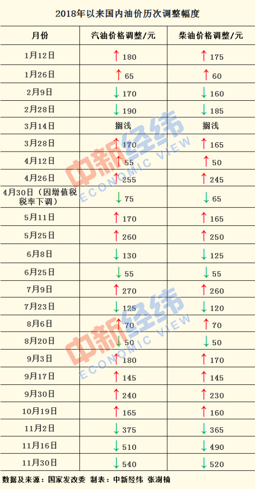 据中新经纬客户端统计,2018年以来,国内成品油价格已经历24次调整,呈现“13涨10跌1搁浅”格局。引人注意的是,经过此前连续三次下调,汽油累计涨幅由下调前的1430元/吨降至5元/吨,柴油累计涨幅由1385元/吨降至10元/吨,已基本回到年初水平。