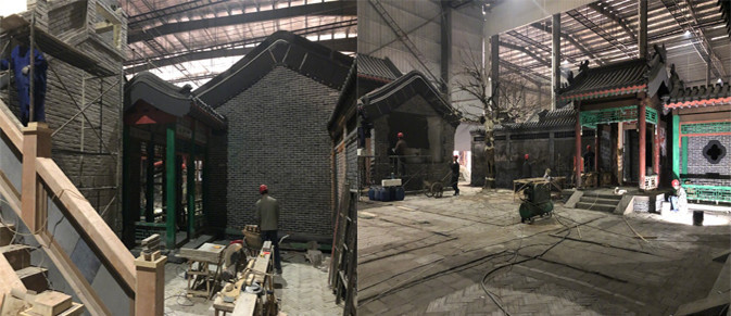 为了能尽可能还原剧中的场景,摄影棚里几乎是完全还原了当时的建筑,图中是工人们在一砖一瓦的建造房屋,虽然是缩小版的场景,但是只有还原出来,取景的时候才会真实,而且,就算是还原缩小版的场景,花费也是不菲啊!