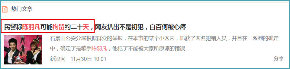 “羽泉”组合中的陈羽凡在11月26日因X毒被捕,让很多一直喜爱“羽泉”和陈羽凡的老歌迷们很是他痛心,二十多年的好友胡海泉也发出了“琼瑶式”的爆问,连续十个为什么透露了心中强烈的痛惜和无奈,12月8日的二十周年演唱会也彻底泡了汤。