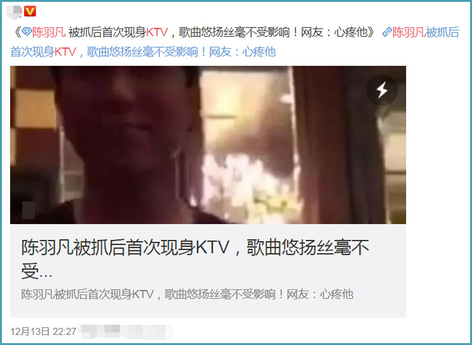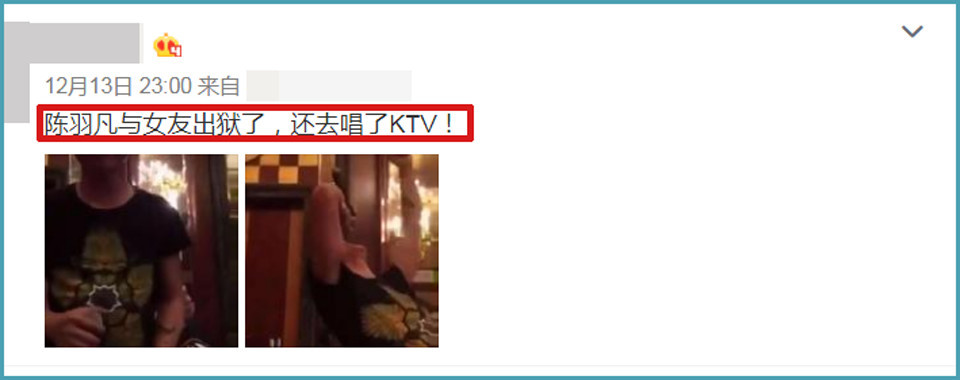 甚至,有的营销号称“陈羽凡与女友出狱后,第一件事是去唱KTV”,不知道编造这样的谣言的用心是什么?