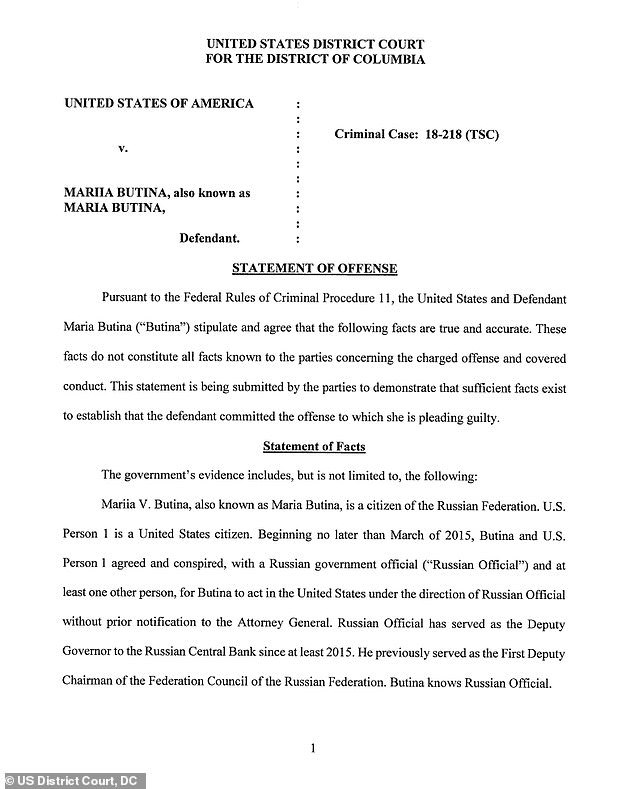 美方公布的有关布蒂娜认罪的部分内容。(图源:《每日邮报》)