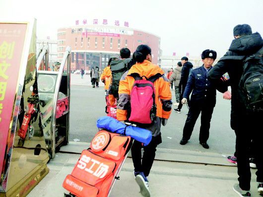 15日,济南一艺考考点,考生陆续进场。(摄影 郭立伟)