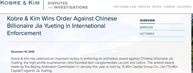 Kobre&Kim表示,这是债主第一次成功冻结了贾跃亭的海外资产。