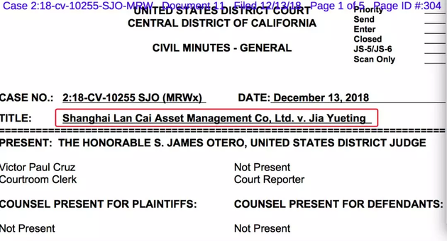美国加州中区法院公布的文书显示,12月10日,“上海懒财资产管理有限公司”(以下简称“懒财资产”)向法院提请了冻结贾跃亭相关资产的申请,而贾跃亭方面并未提出异议。