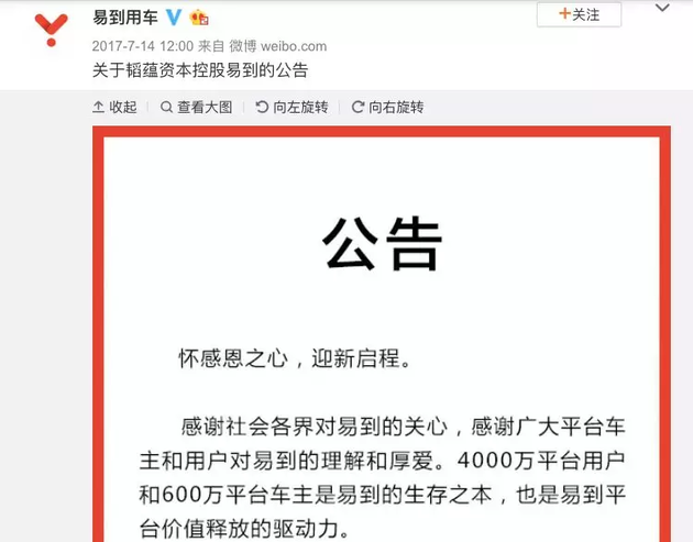 去年7月,乐视旗下的网约车平台易到宣布,通过债转股方式,韬蕴资本成为易到控股股东。