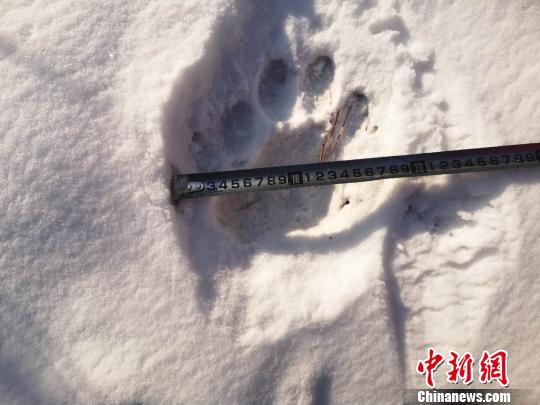 雪地上留下清晰的东北虎足迹。上营森林经营局供图