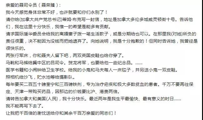 就正如遗书所表达的那样,他,一位伟大的国际主义战士,守护了中加的关系。