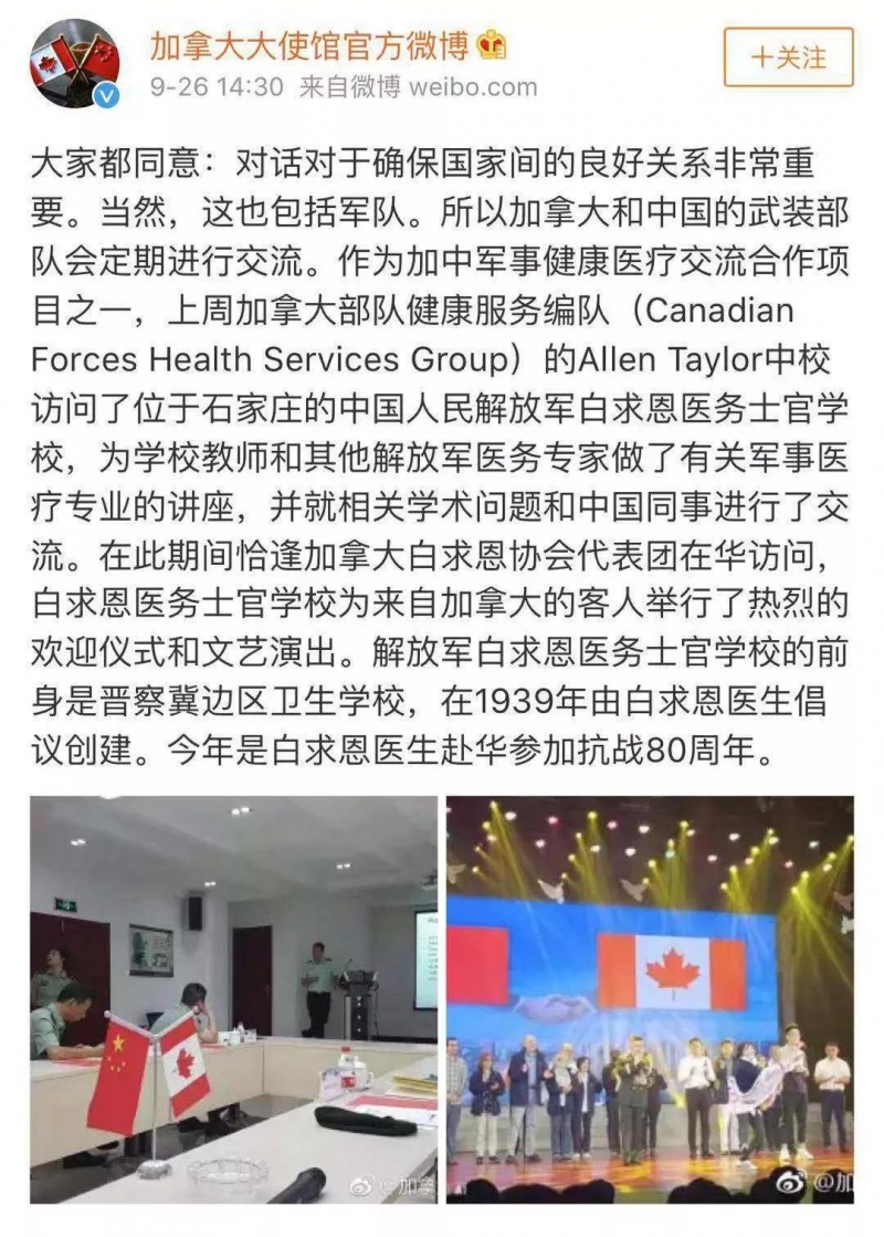 在中加关系的敏感时刻,加拿大驻华使馆选择此时谈论白求恩,其用意似乎不言自明。