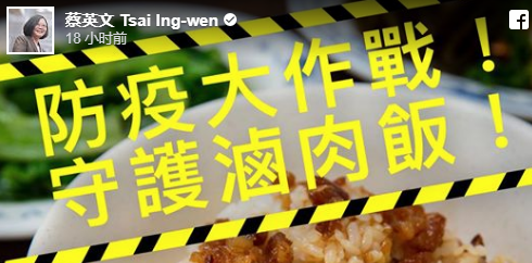 此外,台当局领导人蔡英文甚至还针对此事喊出了所谓“守护卤肉饭”的口号↓