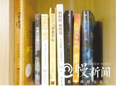 看书除了环境,读物本身也很重要。重庆晚报记者浏览书架,约50本书,从类型上看,文学类是主流,有《老人与海》、《苏菲的世界》这类世界名著,也有《月亮与六便士》、《解忧杂货店》等被当今文艺青年奉为必读本的作品,至于《水煮重庆》、《重庆掌故》等接地气的书籍,也没有落下。