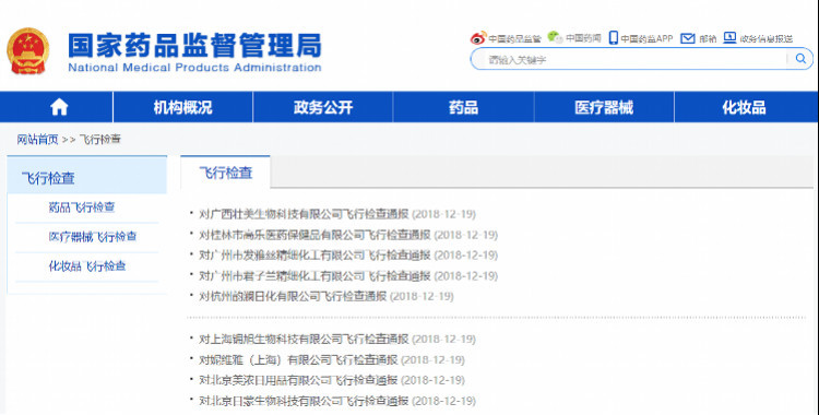 国家药监局一日连发9道飞行检查通报,9家化妆品企业因违反相关规定被处理,其中广州市君子兰精细化工有限公司、广西壮美生物科技有限公司两家企业被责令暂停生产,北京日蒙生物科技有限公司等7家企业被责令限期整改。