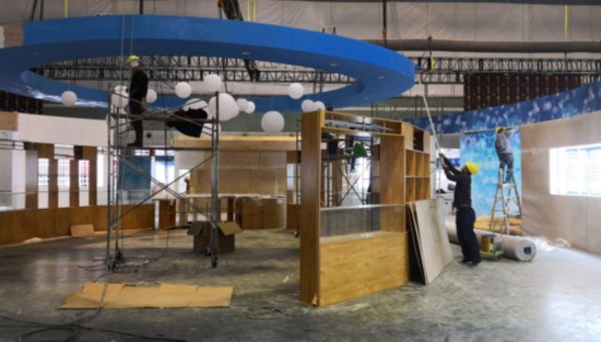 在室内展馆,工程负责人向小编介绍,展馆内的特装展台已经初具雏形,整体框架基本搭建完毕,工人们有的在整理装修物料,有的在粘贴巨幅宣传壁纸,布展工作均有条不紊的进行中。负责人说:“展台需要具备相当的承重能力,如果出现纰漏则会存在安全隐患,因此我们将对螺丝的松紧度、台面的平整度、棚顶装饰的安全性等每一个细节进行严格把关。”据介绍,展台因为结构相对复杂,对质量的要求也很高,连日来,施工人员都在加班加点地对该展台进行设计、装修、调试。与此同时,各个展馆的防火、监控、应急、保暖、通讯等设备也都正在调试测试中,为本届雪博会的顺利召开全方位保驾护航。