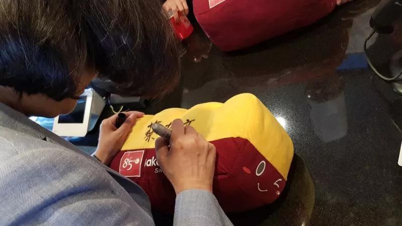 ▲资料图片:8月15日,蔡英文“过境”洛杉矶时,在85度C咖啡门店内给抱枕签名。