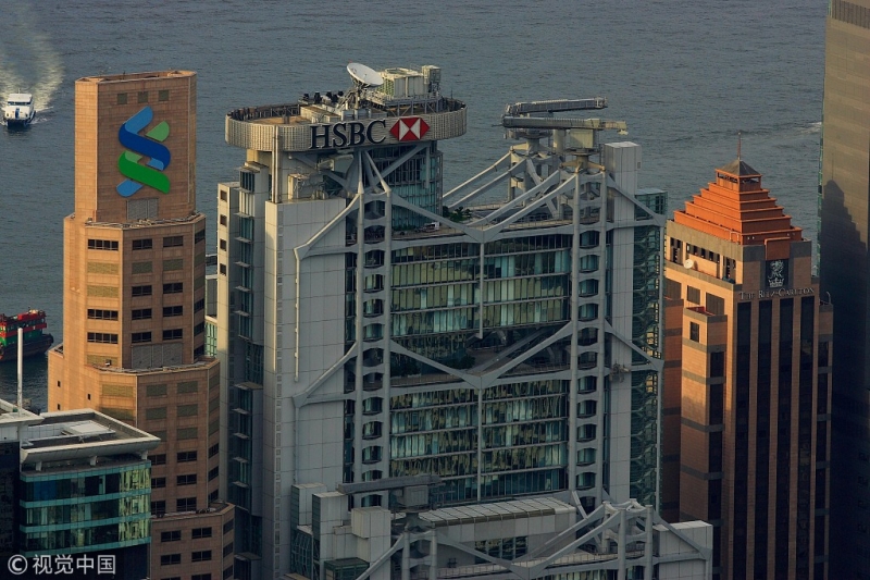 香港中环金融中心,渣打银行、汇丰银行等。图源:视觉中国
