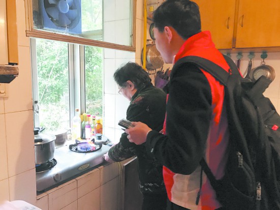 志愿者上门服务,为年近八旬的伊婆婆维修燃气灶和热水器