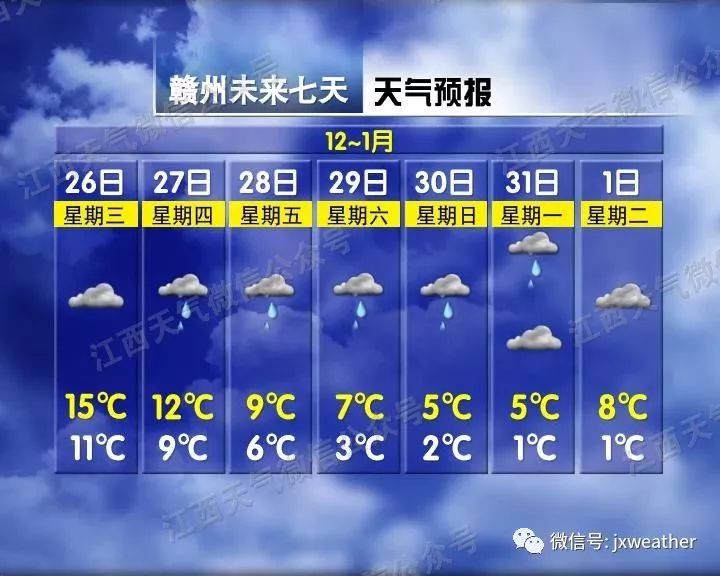 今天白天到晚上赣州市和抚州,吉安两市南部阴天多云,部分有零星小雨;