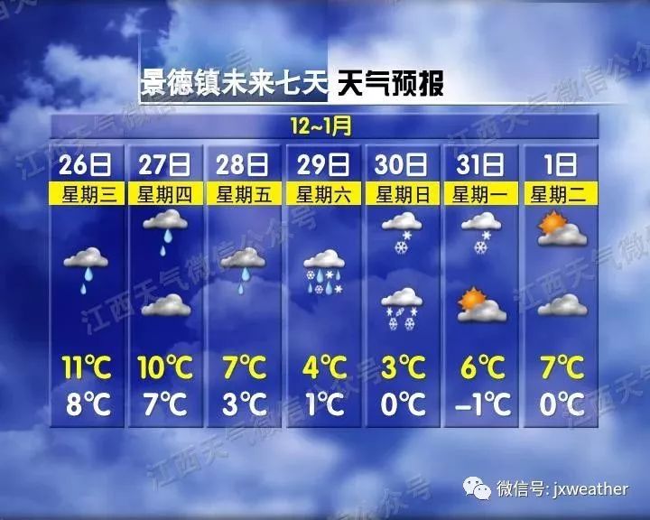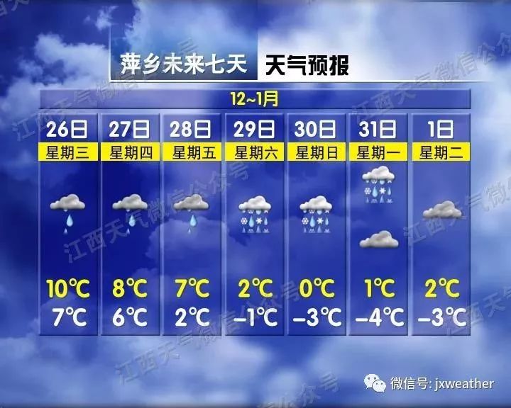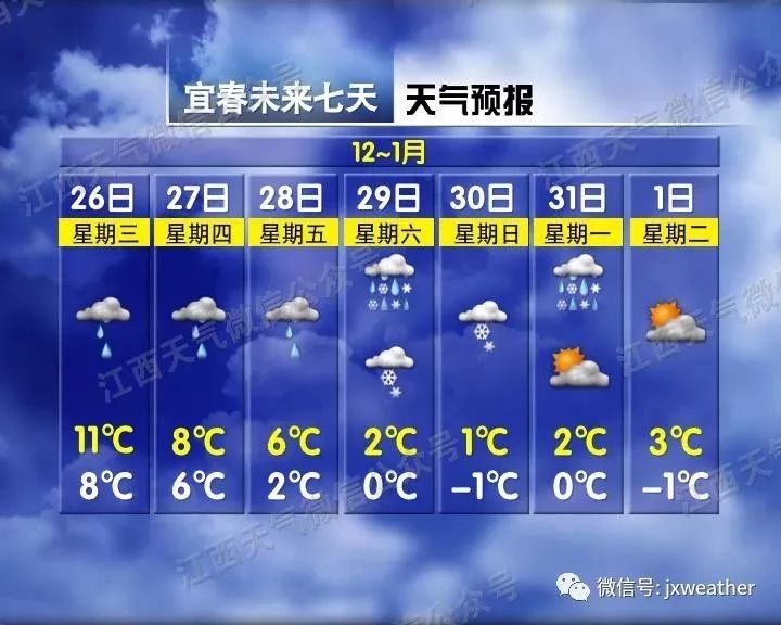 今天最高温度:赣西北8〜10℃;赣南14〜16℃,全省其他地区10〜12℃。