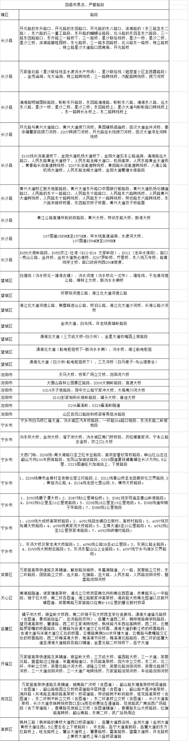 元旦假期,湖南面临一轮低温雨雪冰冻天气,气象部门发出橙色预警,常德、益阳、岳阳、湘西州、张家界、怀化、娄底、邵阳、长沙、湘潭、株洲、衡阳及永州北部、郴州北部将出现雨凇或积雪,且最低气温≤-2℃。长沙交警提醒: