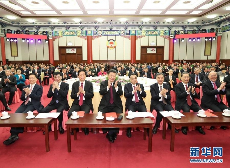 12月29日,全国政协在北京举行新年茶话会。党和国家领导人习近平、李克强、栗战书、汪洋、王沪宁、赵乐际、韩正、王岐山出席茶话会并观看演出。新华社记者 黄敬文 摄
