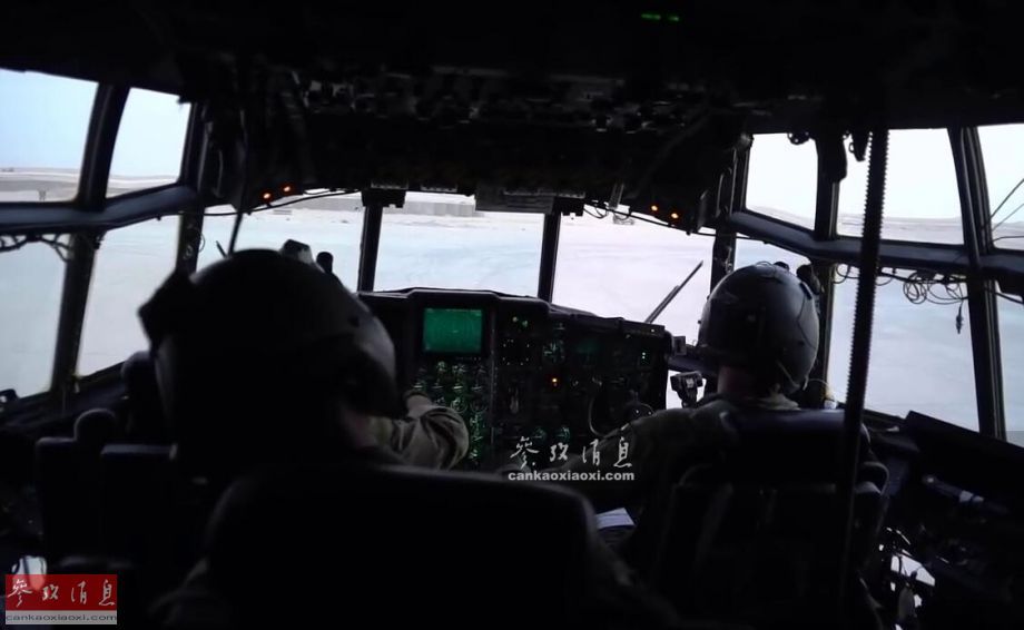 AC-130W座舱内,飞行员正在进行起飞前检查,注意飞行头盔上挂有夜视镜。