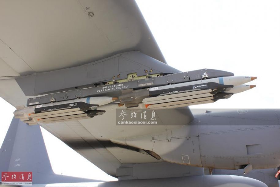 除“狮鹫”导弹外,AC-130W还能挂载GBU-39/B卫星制导“小直径炸弹”(SDB)实施防区外精确打击(射程超110千米)的能力。图为AC-130W使用复式挂架外挂GBU-39小直径炸弹(SDB)资料图。