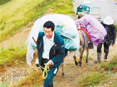 大山深处再现“马班邮路”。图为乡镇邮递员崔平徒步30公里送邮。