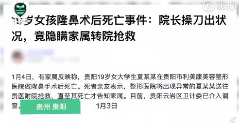 19岁女大学生小夏花费26900元进行隆鼻,然而7小时后,母亲和亲属再次见到小夏,是在附近的贵州医科大学附属医院,