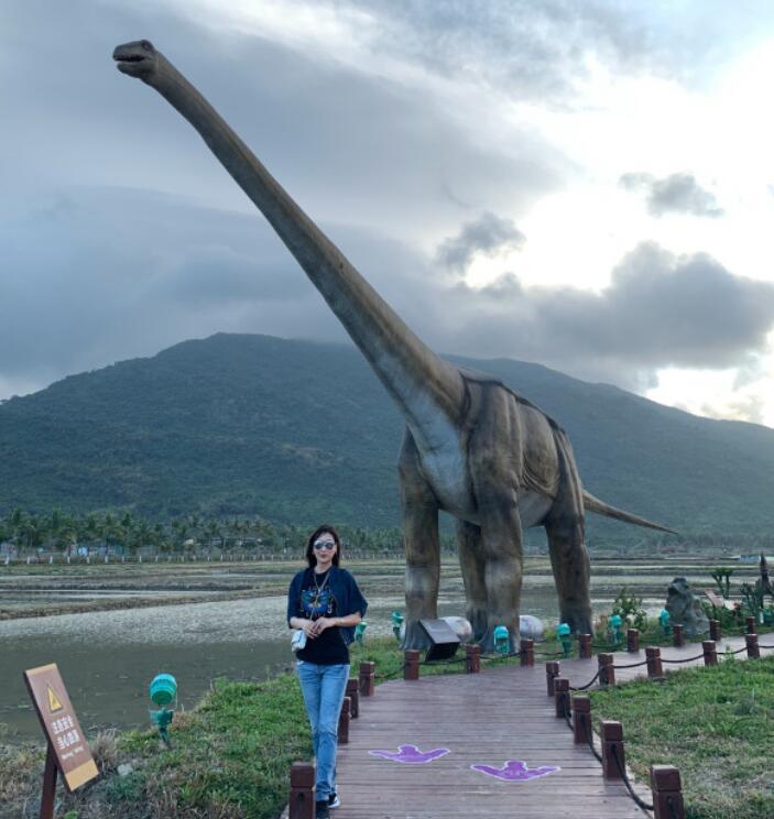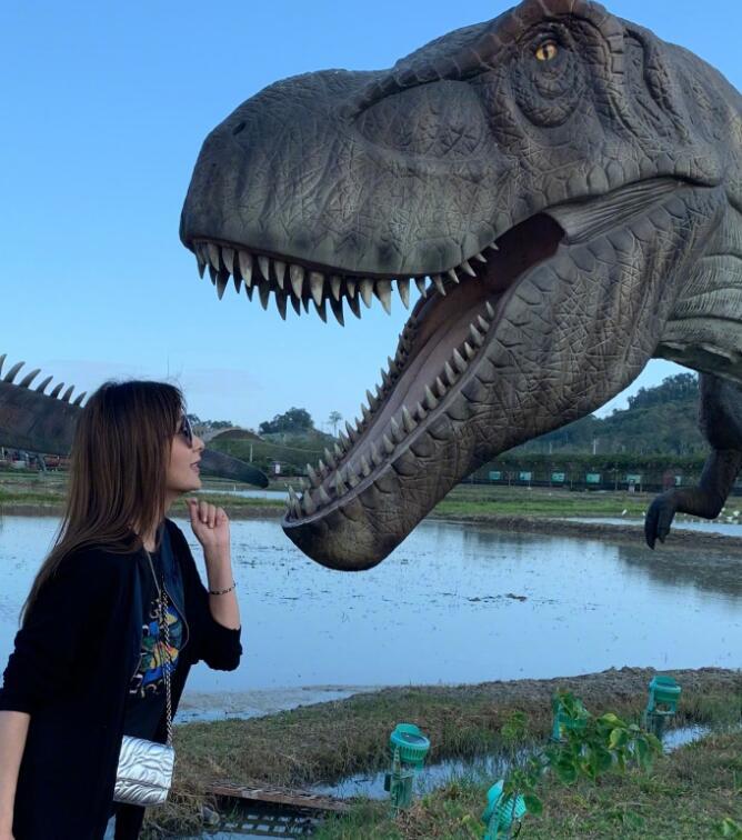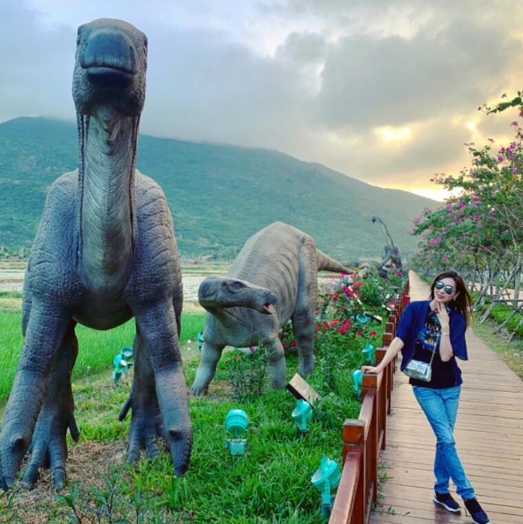 杨恭如与恐龙合影,真的是冻龄逆生长的美女了,完全看不出45岁的年龄。