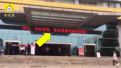 1月9日,四川成都,四川工商学院在LED屏幕打出了:同学们,今年开始,考试成绩包邮到家哦!学生感概万千,有的说这种方式太刺激了,有学霸表示无所谓。但学校更希望学生能在期末考试中努力,考试不作弊。