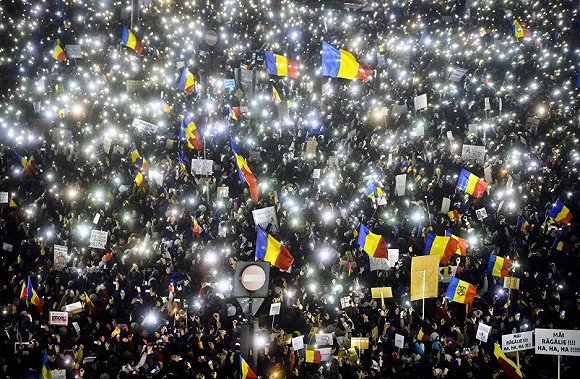 2017年2月5日,布加勒斯特的大学广场上爆发大规模的反政府游行。图源:BGR