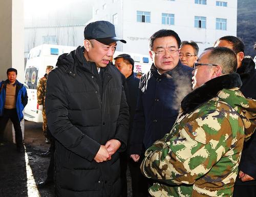 1月13日上午,根据省委安排,省长刘国中赶赴神木市百吉矿业李家沟煤矿事故现场,了解井下情况、救援进展和事故原因。 本报记者 母家亮摄