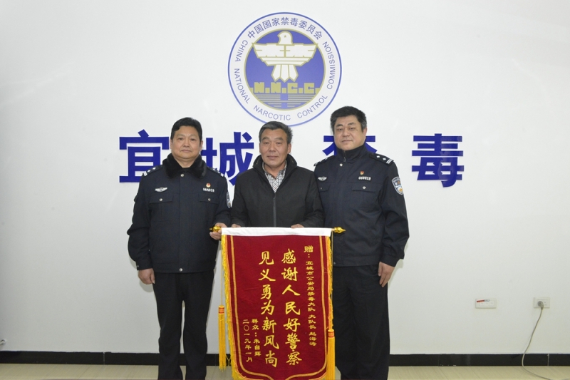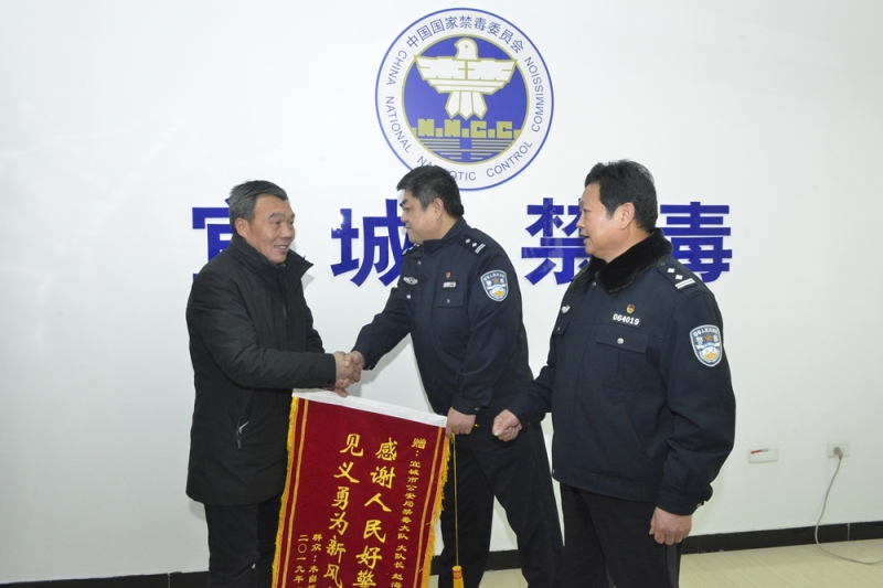 1月16日下午,李先生来到宜城市公安局禁毒大队,委托赵海涛的同事代为转送锦旗,并再三表达感激之情。