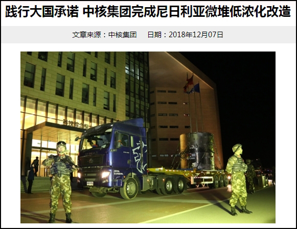 在这篇低调且充满专业术语的新闻稿背后,却有一段关于核安全不为人知的故事:2018年10月到12月,中美俄等国联手,成功从尼日利亚转移出一批高浓度核材料,使其免于落入恐怖分子之手。而中方在其中发挥的作用,也得到了美国媒体的称赞。
