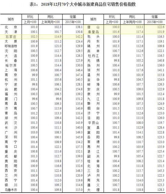 原标题:2018年12月份石家庄秦皇岛房价上涨唐山持平