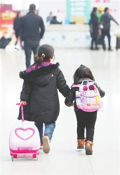 1月22日11时,南昌火车站二楼候车室,一名小女孩紧紧牵着妹妹,一路上不停地说:“妹妹,不要松手。”小姐姐关爱小妹妹,此情此景让人非常暖心。本报记者 朱文标摄