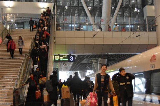 上午9时20分,武汉站16站台上,从宜昌到武汉的D5851次列车下来的不少旅客,正在站台工作人员的引导下到候车室进行中转换乘。“年前买到了今天去深圳的高铁票,今天在站内中转很方便”,荆州的杨先生说。