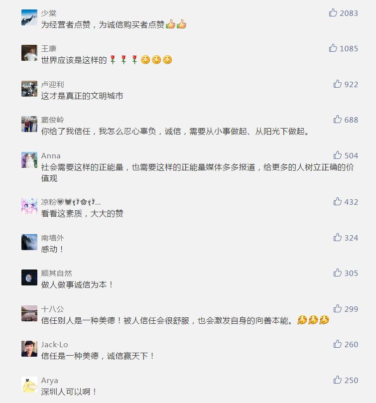 深圳人的诚信出乎她的意料