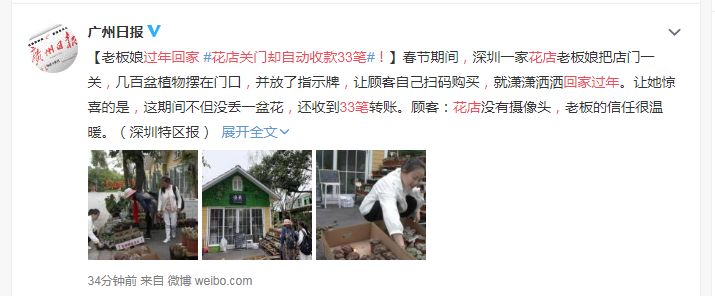 (原标题:过年花店关门却自动收款33笔,网友:这就是深圳素质)