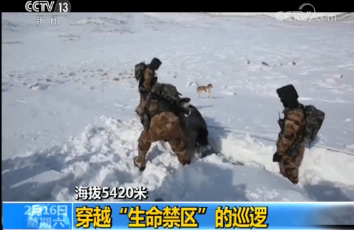 新疆喀什军分区克克吐鲁克边防连连长 肖博文:现在海拔已经5420米了,我们已经到达边境线一线了。现在就是巡察铁丝网,看铁丝网有没有被破坏,在边境上有没有脚印。