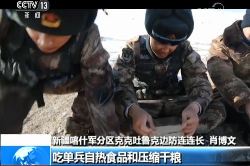 新疆喀什军分区克克吐鲁克边防连连长 肖博文:吃单兵自热食品和压缩干粮,因为这个边境线上生不了火,所以我们只能吃一些简单比较方便的东西。