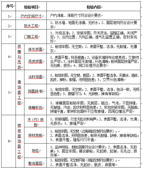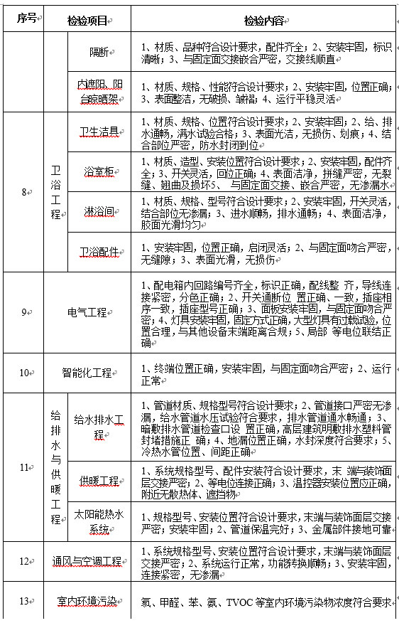 同时,《住宅项目规范》对房屋验收交付给出了详细的标准。如对放水工程要求,防水墙、地面无渗漏、无积水;抹灰顶面的要求则是,粘结牢固,无空鼓,表面平整、洁净,无裂缝,无爆灰等等。