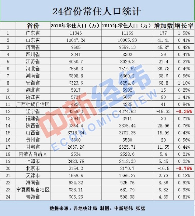 中新经纬客户端3月16日电 (张猛) 近期,多省份2018年度常住人口数据陆续出炉,据中新经纬客户端不完全统计,截至发稿时,已有广东、山东等24省份发布《国民经济和社会发展统计公报》,各地常住人口数据相继公布。