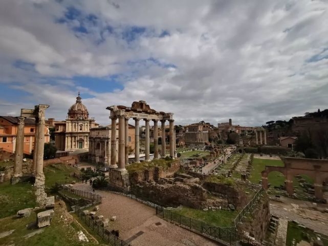 古罗马广场。位于七丘帕拉蒂尼山和卡比托利欧山之间,它是古罗马时代的城市中心,这片废墟中包含神庙、政府机构、剧场、教堂、商场等遗迹,罗马城最早的建筑(公元前七世纪左右建造)很多位于此地。(央视记者张晓鹏拍摄)