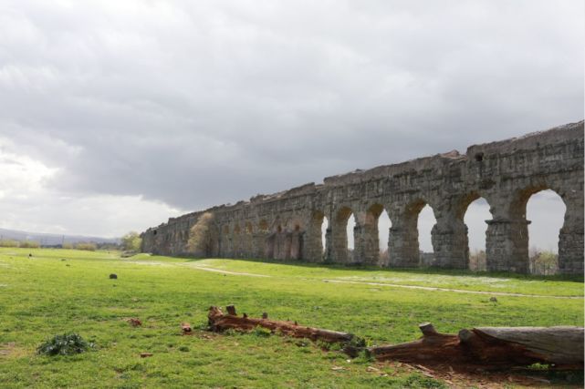 罗马第一条水道——阿庇亚水道,修建于公元前312年。当时每天为罗马城供水73000立方米。(央视记者拍摄)