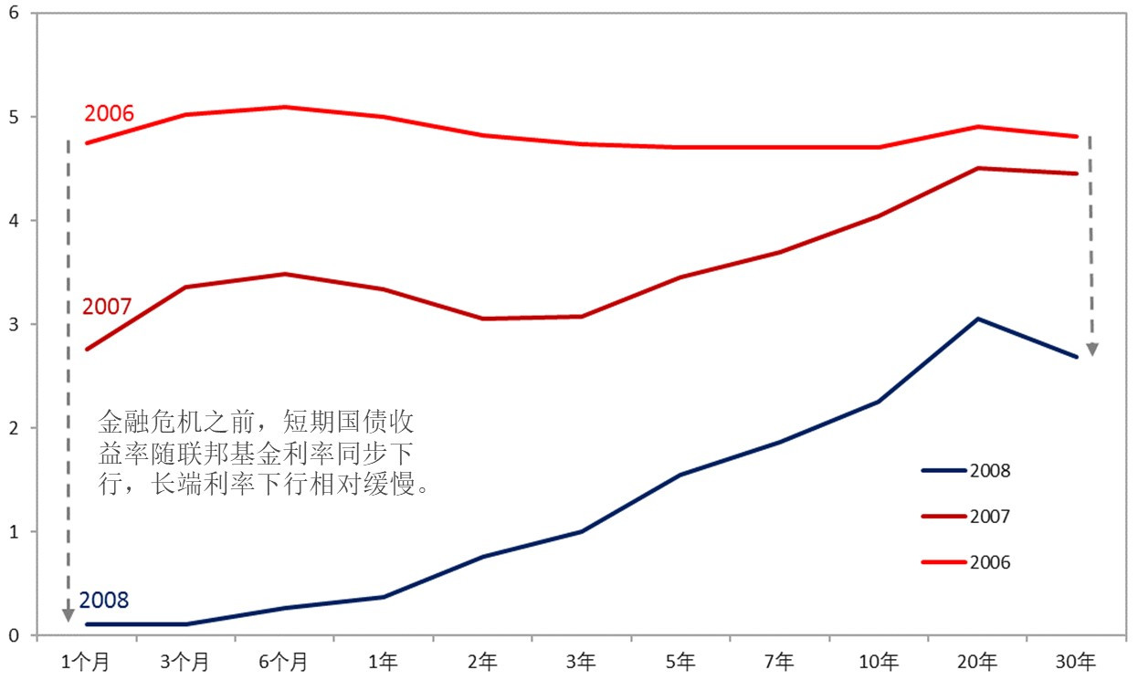 图2:2008年金融危机爆发之前,国债收益率曲线的变化