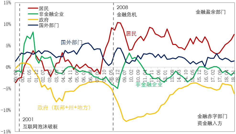 图4:美国各部门的资金盈余和赤字状况(占GDP的比重)