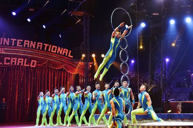 中国杂技演员在蒙特卡洛国际杂技节上表演。蒙特卡洛杂技节是规模最大、水平最高的国际杂技节之一。自1982年起,中国每年派杂技团参赛,并多次夺得最高奖项“金小丑”奖。